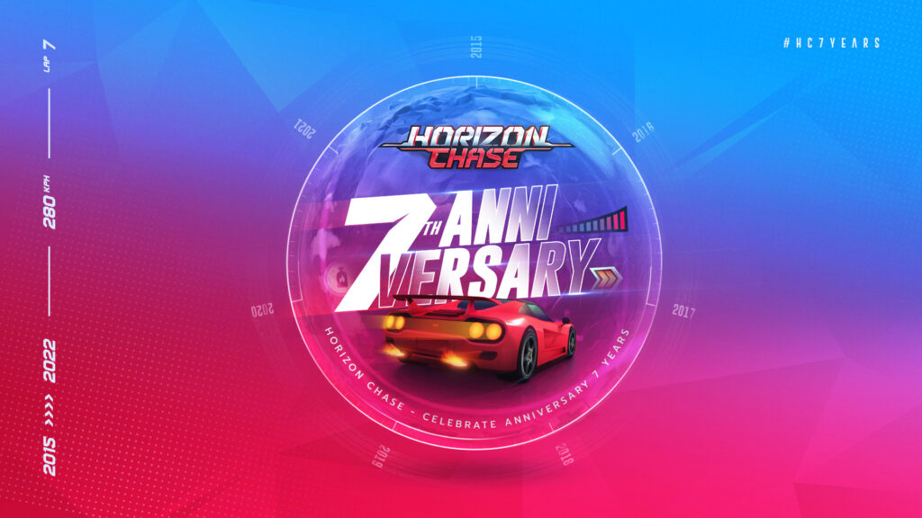 ¡Durante este mes de agosto tan especial celebraremos 7 años con todos vosotros, jugadores de Horizon Chase! Habrá muchas actividades, desde descuentos del juego base y sus expansiones hasta la publicación de nuevo contenido exclusivo de la comunidad que rinde homenaje al juego, e incluso el lanzamiento de Horizon Chase en una nueva plataforma (sí, todavía hay plataformas en las que Horizon Chase no está disponible, todavía :))!