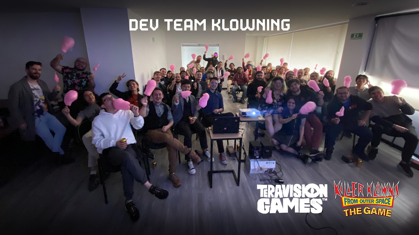 – El cariño del estudio colombiano por la película de culto ha llegado hasta el punto de que han trabajado con Metro-Goldwyn-Mayer, con los directores del filme y hasta con los compositores para hacer un videojuego que represente de manera fiel lo que se mostraba en la pantalla y para dar vida a las ideas que Charles Chiodo y Stephen Chiodo no pudieron formalizar en su día por falta de recursos y/o de tecnología. Estos, además, les han compartido décadas de notas, documentos y conceptos tanto de la época de la concepción y rodaje de Killer Klowns from Outer Space como de los años posteriores.