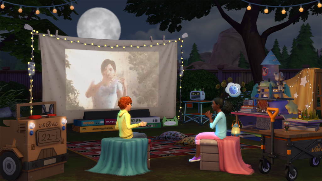 El kit de Los Sims 4 Minicampistas motivará a los Sims a explorar y disfrutar de la naturaleza con elementos cómodos e ingeniosos para acampar en el patio trasero. Ellos podrán organizar juegos afuera con la seguridad que les brindará su fortaleza de mantas, con una colección que ofrece todo lo que una familia necesita para una noche de diversión creativa.